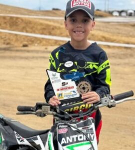 Com apenas 8 anos, Antony já demonstra talento e determinação no motocross, aprendendo e evoluindo a cada prova. Ele mesmo fez questão de agradecer: