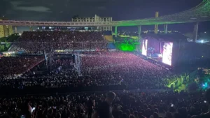 Músicas icônicas como “November Rain” e “Sweet Child O’ Mine” foram cantadas em coro por milhares de pessoas, criando uma atmosfera intensa e emocionante. Os solos de Slash e os refrões marcantes transformaram o espetáculo em uma grande celebração coletiva entre banda e fãs.