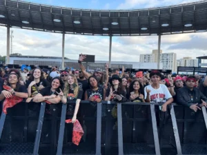 Dentro do estádio, o público reunia fãs de longa data, muitos com histórias marcantes envolvendo a banda. Havia quem já tivesse assistido a dezenas de shows pelo país. Tatuagens, camisetas e outros símbolos evidenciavam a forte conexão dos admiradores com o grupo.